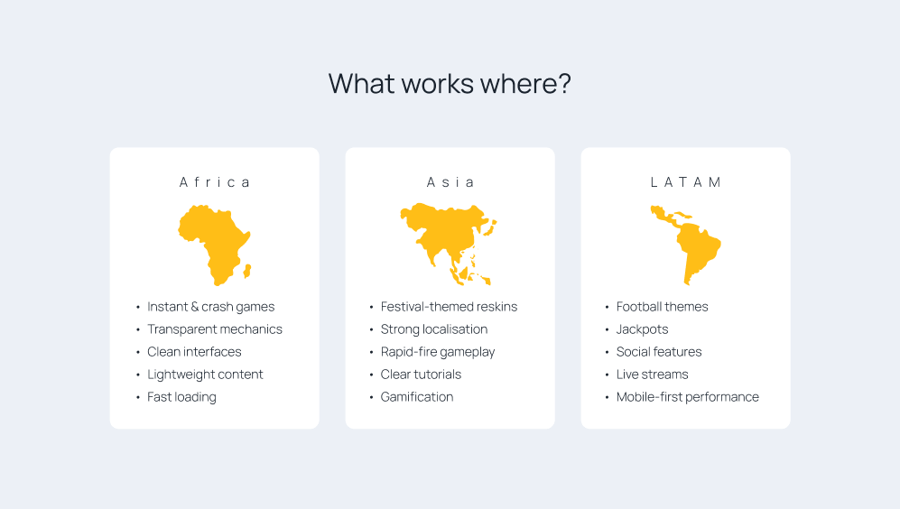 Every iGaming market has its own logic, and success depends on local fit. The same content strategy that drives strong results in one region can easily underperform in another. Here’s what consistently proves effective across the emerging markets where we serve.