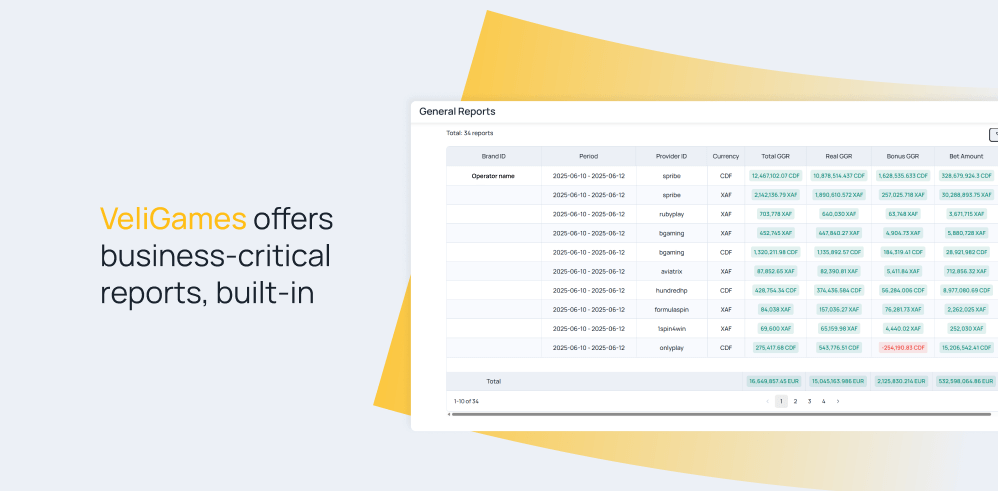 At VeliGames, we make sure our clients always have the most important data, like GGR trends and agent commissions, at their fingertips — unified and consolidated across all game providers for easy access and smarter decisions.